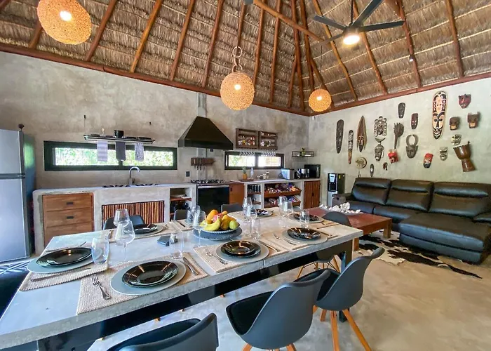 Deze gesitueerde in Akumal Aldea Pukna Villa is op 25 minuten wandelafstand van Yal-ku Lagoon gelegen en biedt toegang tot een zonneterras met een zwembad. Deze villa beschikt over een dompelbad en bevindt zich op korte rijafstand van 10 minuten van La Buena Vida.